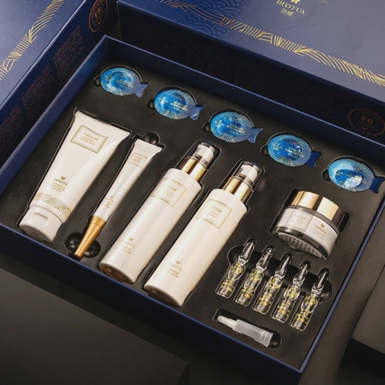 ✅ Fórmula de origen coreano Set de Cuidado Facial con Caviar (15 piezas) – Lujo y eficacia para tu piel🟡 ¿Buscas un tratamiento completo para revitalizar tu piel y combatir los signos del envejecimiento?🟡 El Set de Cuidado Facial con Caviar (15 piezas) es una línea de productos premium que combina ingredientes de alta calidad para ofrecer una experiencia de cuidado intensivo. Diseñado para limpiar, hidratar y rejuvenecer la piel, este set es ideal para quienes desean resultados visibles y una piel más saludable.🟡 Limpieza profunda: El limpiador de caviar elimina eficazmente las impurezas, dejando la piel fresca y limpia.Hidratación intensa: La esencia y el agua hidratante de caviar aportan una hidratación duradera, mejorando la elasticidad de la piel.Tratamiento antiedad: La crema para ojos y la crema hidratante con caviar ayudan a reducir la apariencia de arrugas y líneas finas.Rejuvenecimiento nocturno: La mascarilla de noche con caviar nutre la piel mientras duermes, promoviendo una apariencia más joven al despertar.🟡Transforma tu rutina de cuidado facial con el Set de Cuidado Facial con Caviar (15 piezas). Disponible en Viña Beauty and Health.Ingredientes principales: Extracto de huevas de pescado (caviar) que nutre profundamente, hidrata intensamente y ayuda a calmar irritaciones cutáneas. Ácido hialurónico que proporciona hidratación profunda y duradera, mejora la elasticidad y suaviza líneas de expresión. Hydroxypropyltetrahydropyrantriol que reafirma, rellena la piel y favorece su reparación. Aminoácidos que fortalecen la barrera natural de la piel y promueven la regeneración celular. Solución de oligopéptidos que estimula la producción de colágeno, mejora la firmeza y combate los signos del envejecimiento. Agua purificada como base hidratante para facilitar la absorción de los activos.