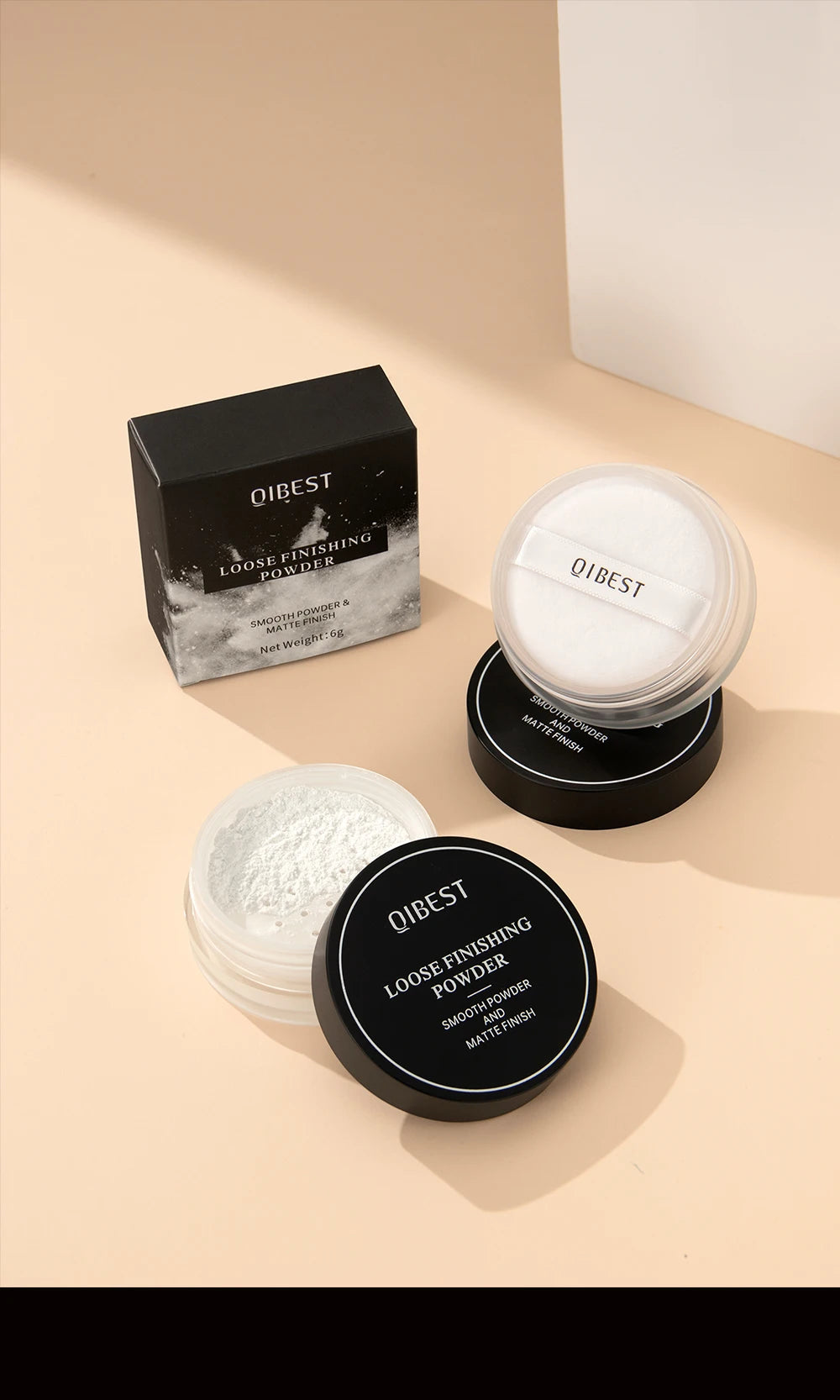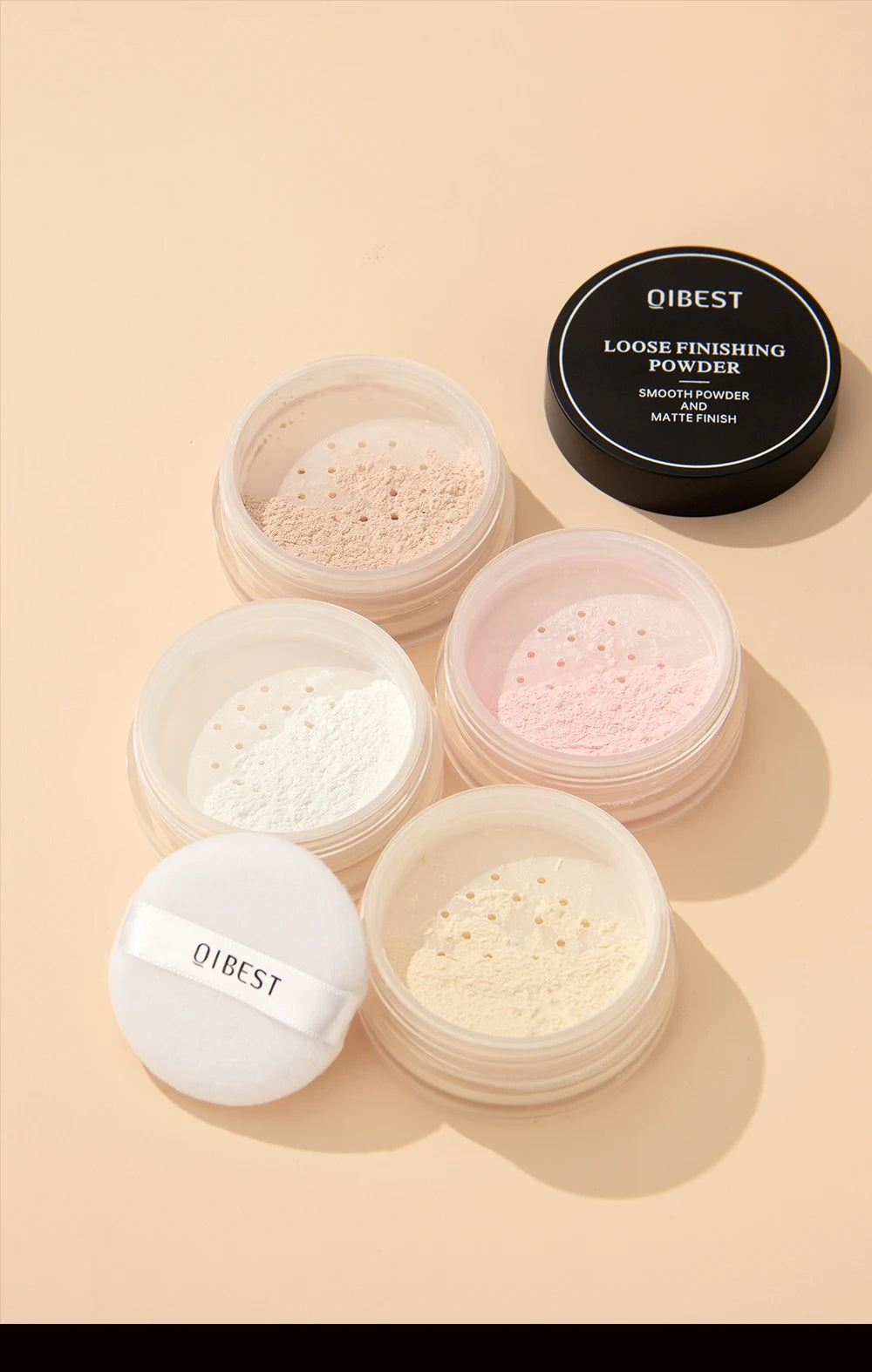QIBEST Face Loose Powder – Polvo suelto translúcido para un acabado mate impecable